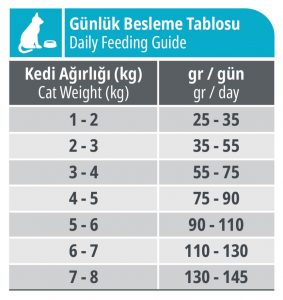مقدار توصیه شده غذا ممکن است بسته به دمای بیرون ، شرایط زندگی گربه (داخل/خارج) ، شخصیت و فعالیت متفاوت باشد.